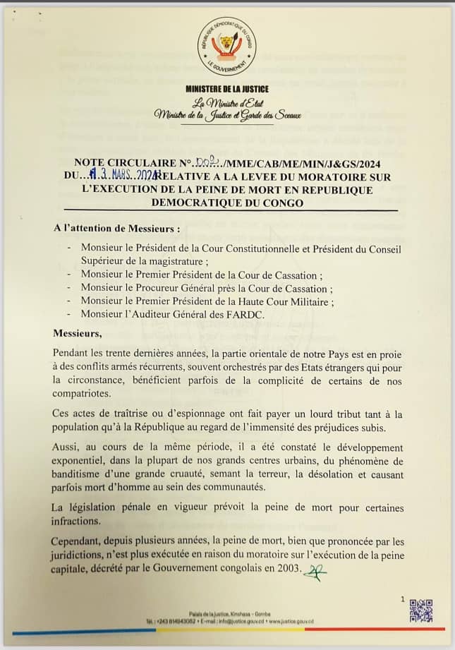 Cette annonce suscite déjà des réactions diverses au sein de la société congolaise et relance le débat sur l’application de la peine capitale dans le pays. Certains saluent cette initiative comme un moyen efficace pour dissuader les criminels les plus impitoyables, tandis que d’autres expriment leurs inquiétudes quant aux possibles abus et erreurs judiciaires qui pourraient découler de cette levée du moratoire.