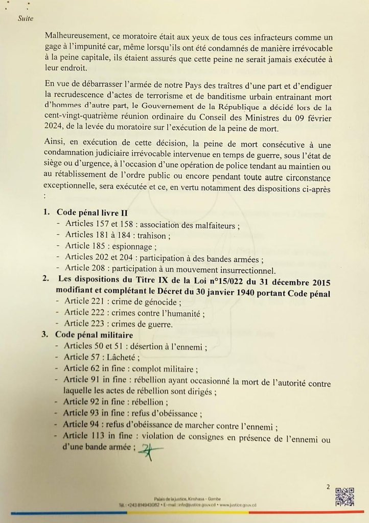 Cette décision marque un tournant dans la politique pénale du pays et souligne l’engagement ferme du gouvernement à lutter contre les crimes les plus graves qui menacent la sécurité nationale. La ministre Mutombo a justifié cette mesure par la nécessité d’assurer une justice rigoureuse face à des actes d’une extrême gravité.