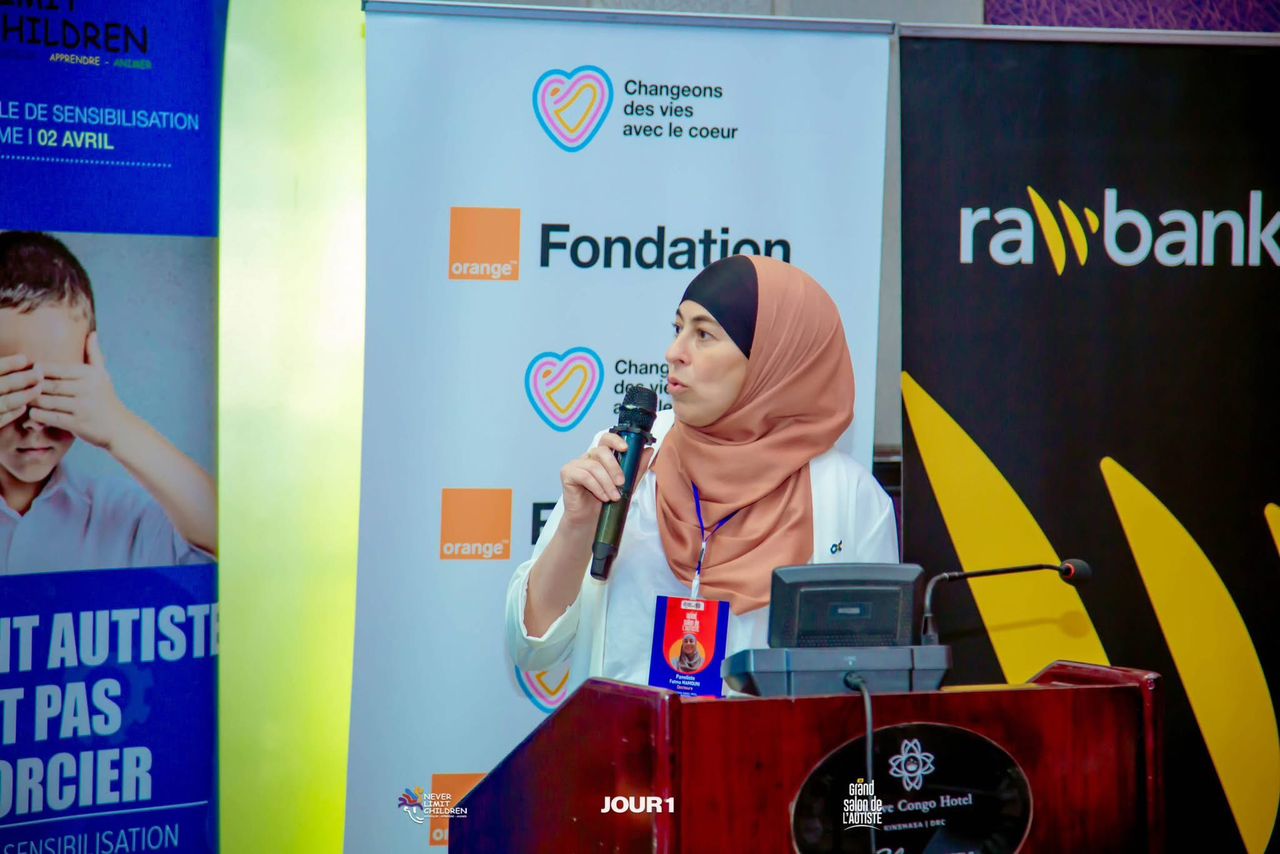 Mme Mamouni Fatma, paneliste, diplomée de psychologie clinique, Université de Paris devant l’auditoire au Grand Salon de l’Autiste à Kinshasa (Photo Presse NLC ASBL)