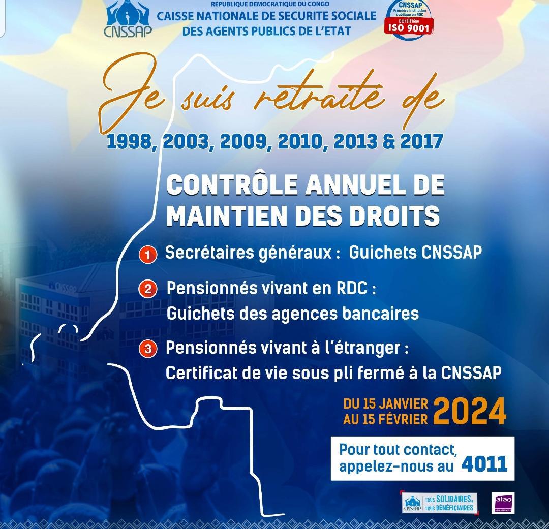 La Caisse Nationale de Sécurité Sociale des Agents Publics de l’État (CNSSAP), par le biais de son Directeur Général Junior Mata M’elanga et sous l’impulsion du Chef de l’État, s’active à lancer une opération de contrôle annuel de maintien des droits des agents de carrière des services publics de l’Etat mis à la retraite en 1998, 2003, 2009, 2010, 2013 et 2017.