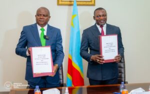 Le Ministre d’Etat en charge du Développement Rural Grégoire Mutshail Mutomb et le Directeur général de l’Agence de Pilotage, de Coordination et de Suivi des Conventions de Collaboration (APCSC), Freddy Shembo ont conclu, le 21 avril 2026 à Kinshasa, un protocole d’accord destiné à renforcer la dynamique de développement des zones rurales et périurbaines en République démocratique du Congo.